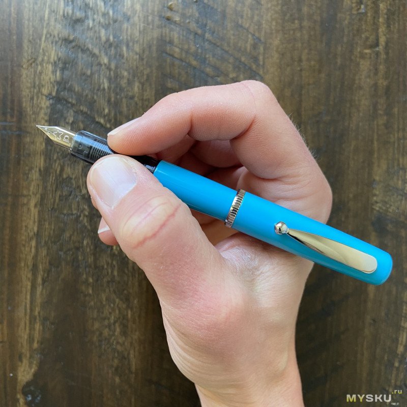 А вот таким образом писать очень комфортно, длины секции более чем достаточно, чтобы перехватить ручку где удобно.