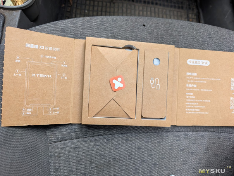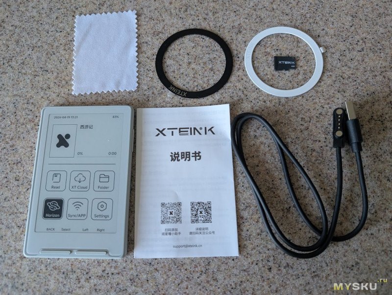 Во второй — небольшой набор аксессуаров. А именно, защитная плёнка (которую я так и не смог аккуратно наклеить, выбросил), два самоклеющихся магнитных кольца, флешка под брендом Xeink и тряпочка для протирки экрана.