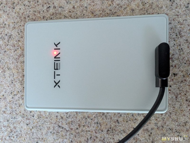 Заряжается устройство через четырёх-контактный магнитный Pogo-pin разъём. По нему же идёт и обмен данными. При зарядке горит красный светодиод. При полной зарядке он становится белым.