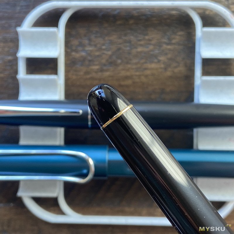У Custom 74 корпус из пластика, но между навершием и основной частью барреля есть металлическое колечко — это потенциальное место протечки, плюс секция на резьбе металлическая — я не большой любитель делать наливайки из ручек, где чернила могут постоянно касаться металла (перо — исключение).