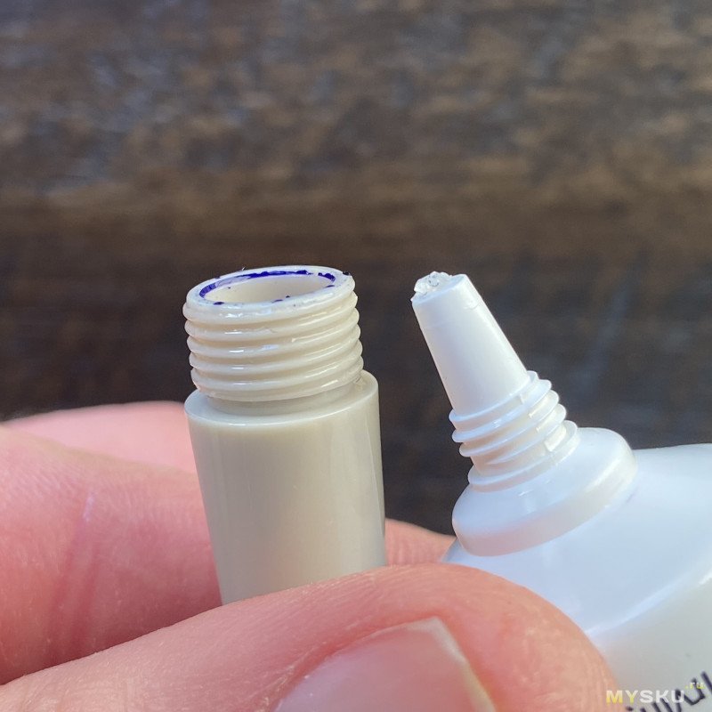 Промазываю резьбу силиконом, размазываю равномерно пальцем. Надо чуть-чуть аккуратности — чтобы смазка не попала внутрь и не заблокировала поток чернил из корпуса в фидер.