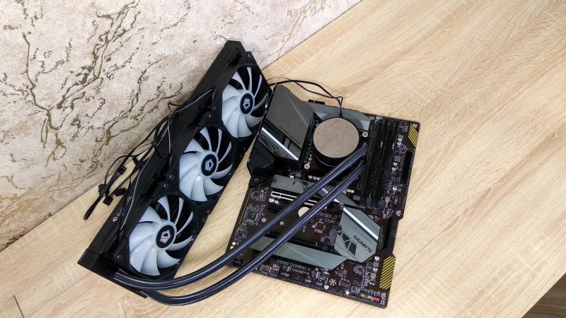 В прошлый раз главными героями были ветеран AMD Phenom II X4 и легендарный Zalman CNPS10 Performa. Теперь конфигурация посвежее и погорячее. Сердце системы — Intel Core i9-11900KF, зафиксированный на 4,7 ГГц по всем ядрам при 1,26 В. Почему не выше? Процессор способен на большее, но именно эти значения оказались предельными для СЖО ID-Cooling ZoomFlow 360XT с применением «середнячковой» пасты — цель была не в том, чтобы кто-то вылетел, а в том, чтобы все участники дошли до финиша. Штатные вертушки заменены на более производительные XPG VENTO PRO 120 PWM, что добавило эффективности и без того неплохому охлаждению.