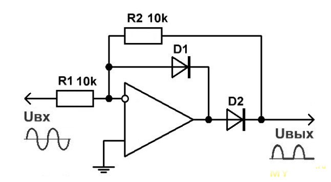 Для этого заменим второй усилитель на активный выпрямитель на ОУ по следующей схеме: