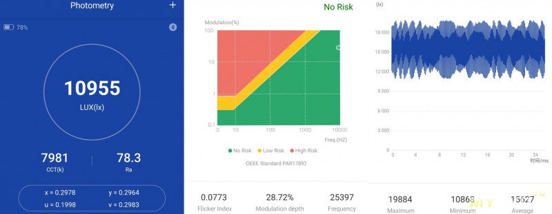 Свет умеренно холодный, 7000-8000K, слегка пятнами: