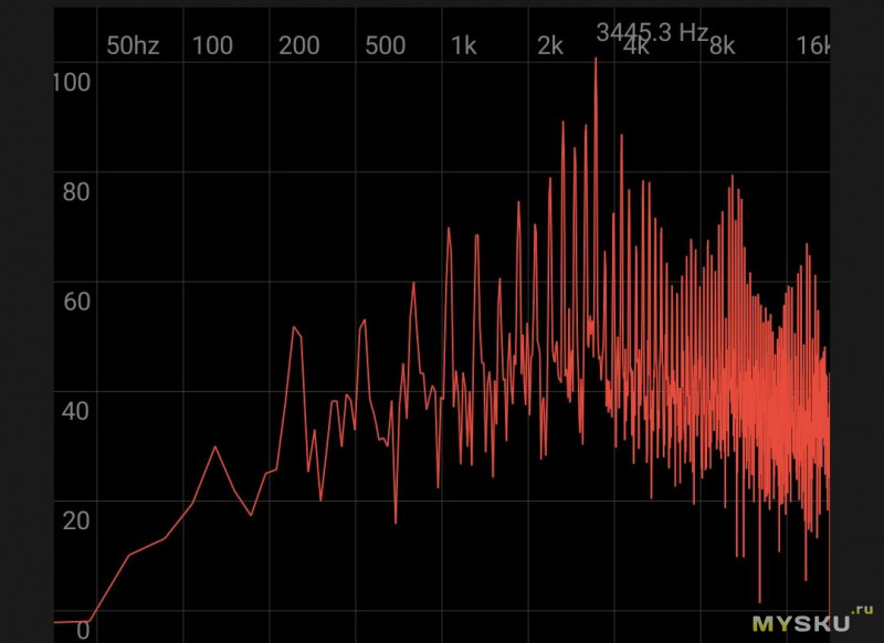 выходного фильтра нет, так что пульсации на частоте преобразования (согласно даташиту это 140кГц).Гуделка издавать еле заметный звук начинает от 2.5В, где-то до 20В громкость заметно растет, но ток при этом составляет единицы мА, частота ~3445Гц с кучей паразитных частот: