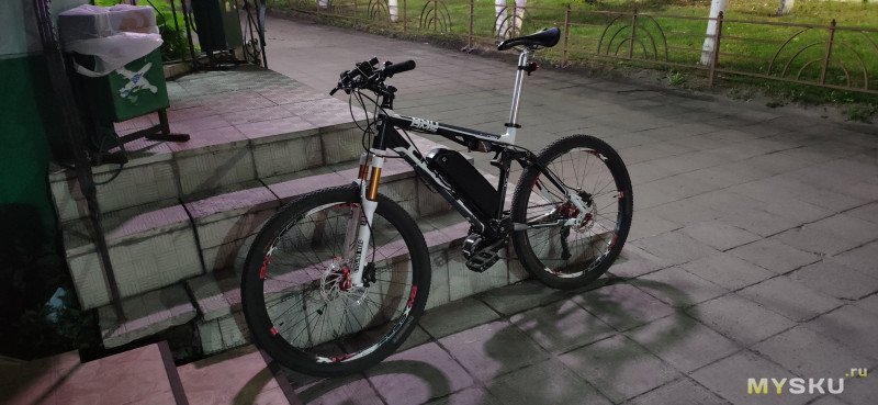 Мне удалось впихнуть 750 Вт мотор Bafang BBS02B в раму кантрийного двухподвесного велосипеда, и получилось сбалансировано по массе и мощности. Велосипед вполне транспортабелен и может ехать своим педальным ходом, а мощности мотора с усилиями от ног хватает для любых лесных грунтовых поездок по плоскому Брянску.
