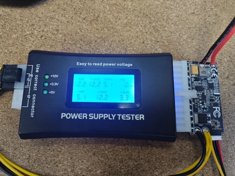 Блок питания и PicoPSU справились с нагрузкой, не взорвались, не расплавились, отключений не было. Свиста от них или треска никакого нет. За пару недель ничего плохого не выявлено. Связка справилась с потреблением в 150 Вт, а без видеокарты, это неслабые процессоры. Т.е. можно достаточно мощные миниПК делать.