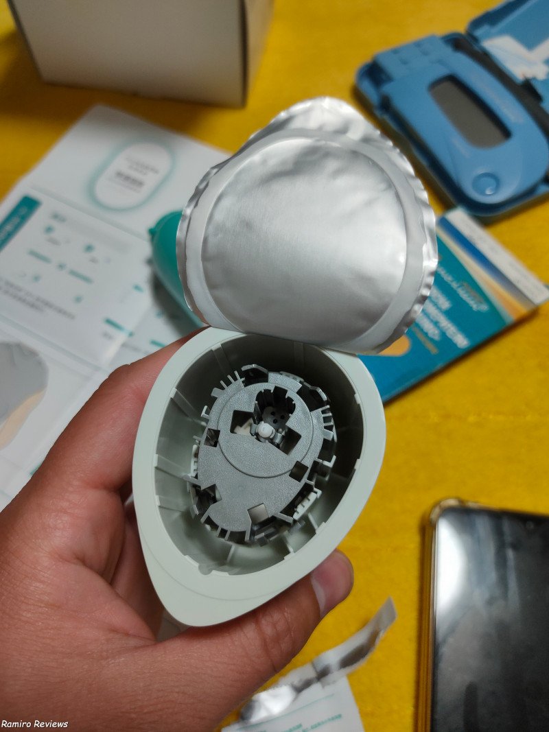 Вытаскиваем обратно аппликатор, проверяем, что датчик находится на одном уровне с его поверхностью. Убираем блокиратор аппликатора (можно заметить иглу).Протираем руку спиртом и лёгким движением плотно прикладываем аппликатор с датчиком, нажимаем сверху кнопку. Датчик закрепляется на теле. Сверху, для верности, фиксируем дополнительным стикером.