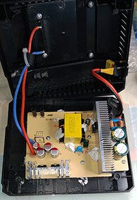 Вообще, у меня нет предпочтения к какой-либо одной марке инструмента, но чем больше у меня стало появляться редко используемых китайских изделий, тем сильнее было понимание, что придётся определяться. Пришлось поддаться массовому помешательству и начать любить Макиту;) Так у меня появились как оригинальные, так и похожие на оригинальные, батареи. Соответственно следующим шагом было понимание о необходимости универсального зарядного устройства. Оригинальное зарядное устройство меня не устраивало невозможностью зарядить неоригинальную батарею и, опять же по моему мнению, завышенным током зарядки. Вообще, про ток зарядки ситуация на любителя, всё зависит от потребностей, лично мне не нужна бешеная скорость зарядки, мои условия эксплуатации инструмента не позволяют так быстро высаживать батареи, поэтому «качество» заряда мне более критично. А различного рода зарядки в комплекте с китайским инструментом меня не устраивали естественно из-за невозможности зарядки оригинальных батарей и по причине того, что на самом деле это не совсем зарядные устройства, это скорее блоки питания с индикатором протекающего тока, построенные на супер-пупер-умном специализированном микроконтроллере с затертой маркировкой, взамен которого нечестные лавочники зачастую устанавливают LM358)) Дополнительными хотелками выступили габаритные размеры и нежелание колхозного вида. А значит нужно было найти корпус, но тут возникла проблема, в Чайне пустой корпус стоил ощутимо дороже (а сейчас даже найти не получилось), чем на ВБ стоило псевдозарядное устройство (уже сильно дороже). Было решено купить парочку и переколхозить внутри, сохранив заводской облик. Один корпус был переделан путём полной замены начинки, туда были интегрированы сравнительно качественный блок питания на 24В и 2А, с модулем DD28CRTA. Однако в комментариях к вышеупомянутому обзору не только удалось выяснить, что начинка моей заготовки не такая плохая в «горячей» части, но и меня попросили описать мою переделку, что я сейчас и делаю в улучшенном её варианте, так как случайно выяснилось, что в первом зарядном устройстве фигово был припаян один из двух токоограничительных резисторов на холодной стороне, из-за чего в батарею в пике уходило что-то в районе 0,7А, а второе отдаёт уже почти 1,4А. Итак, второй вариант переделки, который потребует ещё меньше затрат, нужны только плохое зарядное устройство в нужном корпусе и замечательный модуль DD28CRTA. Сам модуль в первых ревизиях уже описывался на данном ресурсе, что-то особо новое я про него вряд ли напишу, даже изменения в более новых версиях там уже упоминались, поэтому не буду повторяться, но от себя добавлю, что данный модуль почему-то незаслуженно непопулярен, хотя это крайне интересное решение. Но пришло время описать именно само рукоделие и первый шаг это разборка донора и внимательный осмотр его платы. А там всё скромненько и даже уныленько.