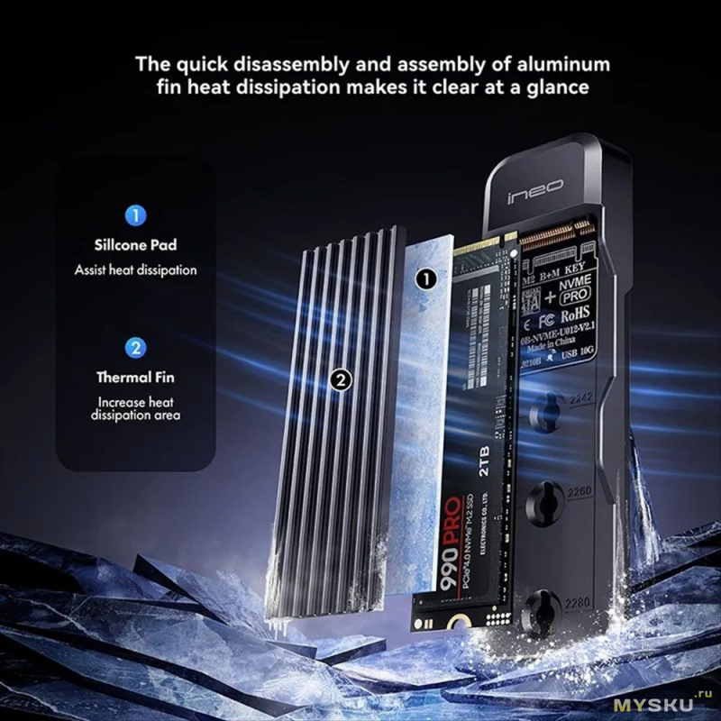 Перед установкой SSD удаляю его штатное охлаждение, и ставлю комплектную термопрокладку от бокса.