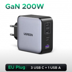 Сетевое зарядное устройство Ugreen Nexode Pro 200W GaN модель X764 — это мощный 4-портовый адаптер (3xUSB-C + 1xUSB-A) с технологией GaN, обеспечивающий суммарную мощность до 200 Вт. Поддерживает быструю зарядку PD 140 Вт (USB-C1), подходит для ноутбуков, планшетов и смартфонов, имеет защиту от перегрева и перегрузок.