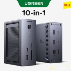 Полноценная 10-в-1 USB-C док-станция с встроенным слотом под M.2 NVMe SSD. Подходит для ноутбуков, планшетов и портативных консолей — один кабель для подключения. Отзывов много, в целом нормальные. Продавец — Ugreen Official Store.