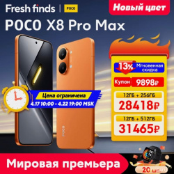 С купоном продавца модификация POCO X8 Pro Max оранжевого цвета на 12/512 ГБ стоит 31089 руб. Смартфон остался аналогичным предыдущим черному и белому расцветкам, технические характеристики не изменились. Процессор — MediaTek Dimensity 9500s. Основная камера с OIS на 50MP от Light Fusion. Большой AMOLED экран.