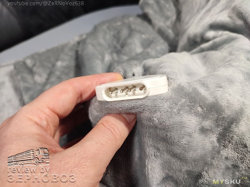Из практичных особенностей — съёмный разъём питания, позволяющий полностью стирать плед в машинке (в деликатном режиме). Длина кабеля 2.1 м, вполне достаточная.