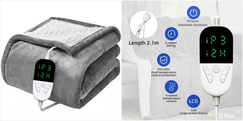 ➽ типичный, но добротно выполненный электрический плед с упором на безопасность и комфорт