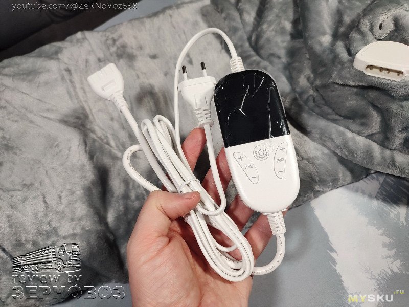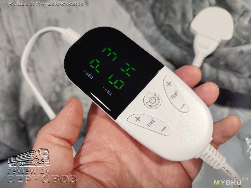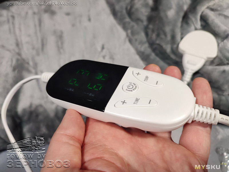 Индикация реализована через сегментный дисплей с подсветкой. Никаких дополнительных режимов вроде «быстрый нагрев» не предусмотрено — в реальности это и не требуется, так как на максимуме плед выходит на рабочую температуру примерно за 5–10 минут.