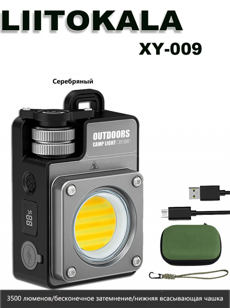 В комплекте фонарь, металлическое колечко, темляк, кабель для зарядки и инструкция.