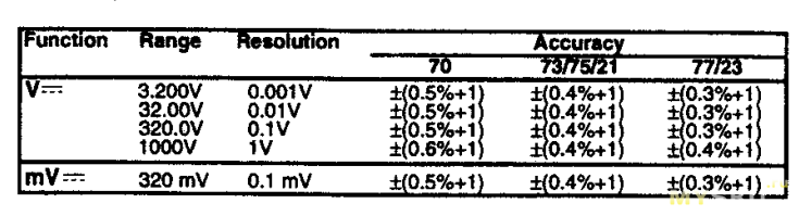 Постоянное напряжение: 60.00мВ — 610В | Шаг: 0.01мВ — 1В | Точность: ± (0.8% + 1)