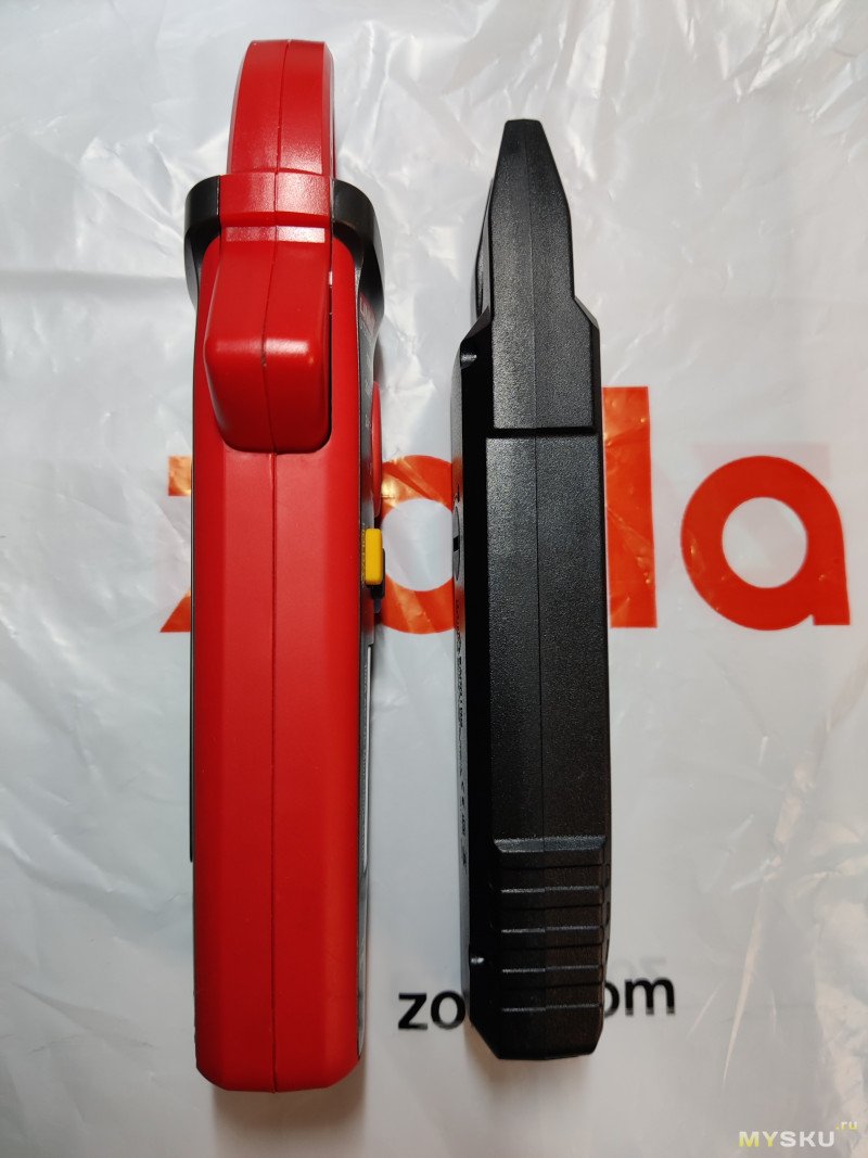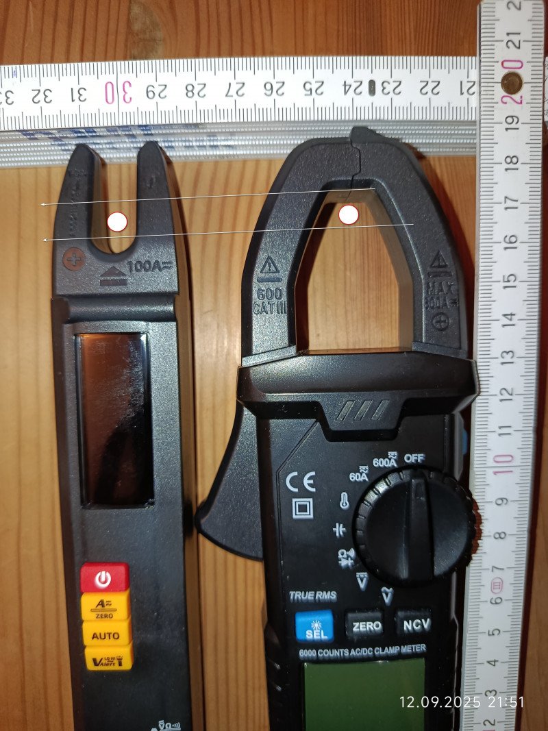 Поэтому если сравнивать с обычными клещами, то всё не так страшно. Попытался это изобразить. Место куда попадает провод, при одинаковых условиях с классическими клещами, находится ещё во вполне рабочей зоне. И часто проблема не в близкорасположенной задней стенке, а в проводах по обе стороны, от измеряемого, которые не дают ввести раскрытые клещи, чтобы обхватить провод. С таким я и столкнулся
