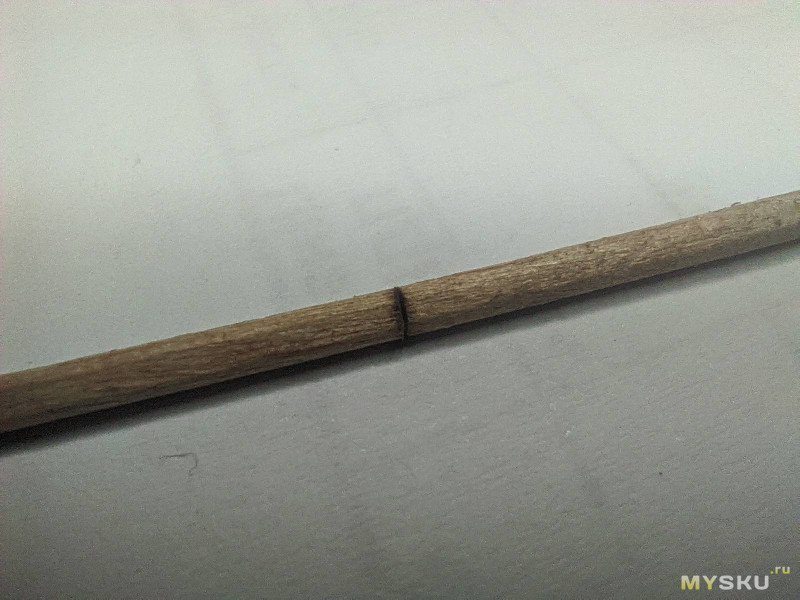 Даже косточку абрикоса удалось разрезать на весу. Видно, как лезвие нагревается при большом усилии — древесина обугливается.