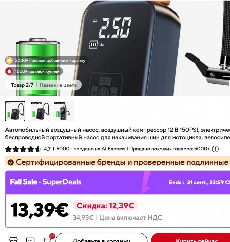 Вот уже несколько лет я пользуюсь для накачки/подкачки шин велосипеда сяомовским аккумуляторным насосом первой ревизии. Вернее, пользовался до недавнего времени, покольку у него померли аккумуляторы, а не инвазивно разобрать корпус для их замены не вижу возможности. Поэтому, когда мне подвернулся сабж, я его заказал. Он явно более дружелюбен к велосипедистам — занимает значительно меньше места и ощутимо легче