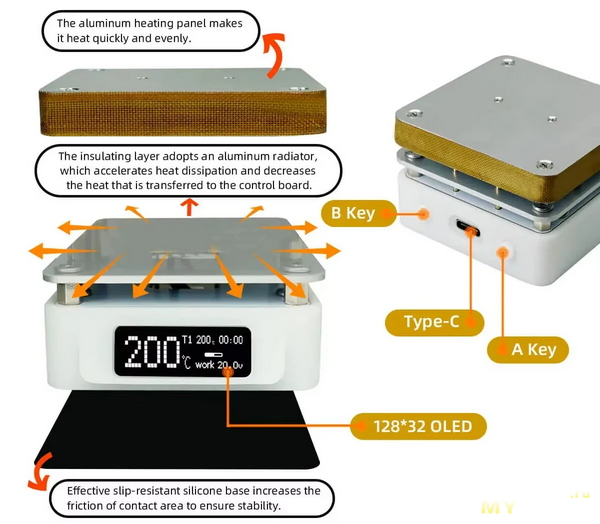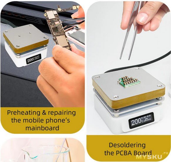 Назначение: мини-нагревательная плата для монтажа/демонтажа компонентов, ремонтных работ
