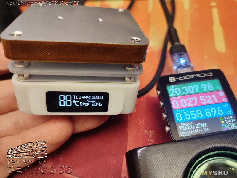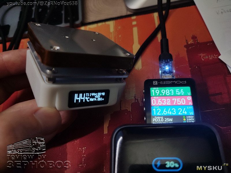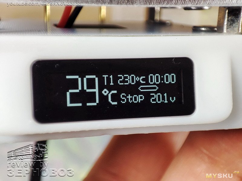 OLED-экран информативен, читается под любым углом. Индикацию работы я бы вынес слева от температуры (мигает при нагреве с заполнением бара). В любом случае — следите за температурой.