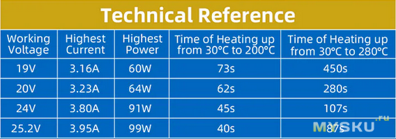 плата может прогреваться до 200°C от 40 до 73 секунд, а до максимальных 280°C — от 1.5 до 7.5 минут, максимальная потребляемая мощность и скорость нагрева зависит от подключения (а также от настроек, но об этом чуть ниже)
