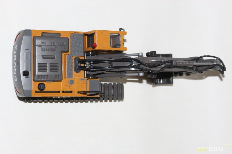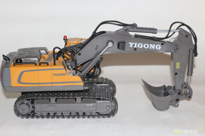 Что в итоге. Игрушка прям без пяти минут огонь — отличная детализация, дополнительные звуковые эффекты (что важно — их можно отключить). Была бы более реалистичной кинематика ковша — вообще был бы атас. Но я тут быстро пробежался по лотам моделей экскаваторов — в ценовом диапазоне до 100 долларов не вижу моделей с полноценным контролем ковша. Поэтому считаю, что с учетом цены сабж станет отличным подарком ребенку, увлекающемуся строительной техникой.