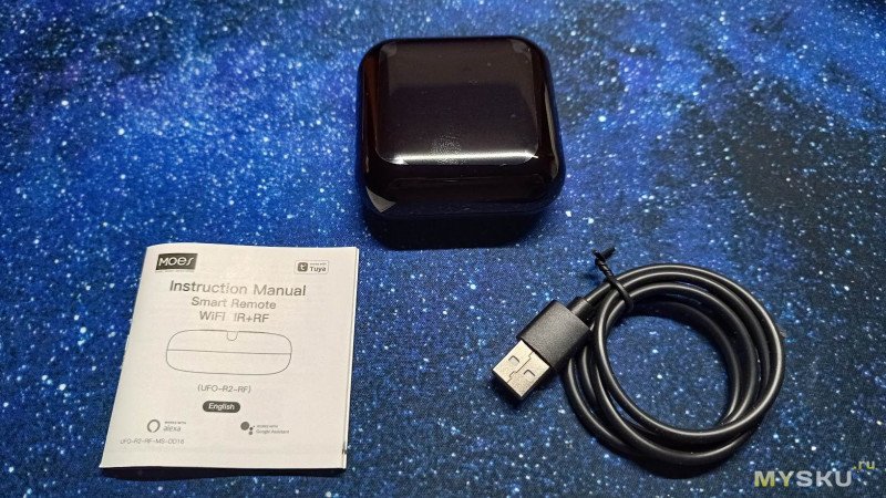 Комплект поставки состоит из пульта, кабеля питания и инструкции.