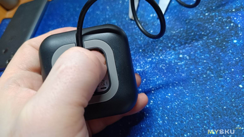 В углу спряталась маленькая кнопочка перезагрузки и активации устройства при сопряжении со смартфоном.