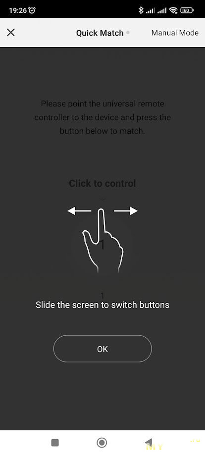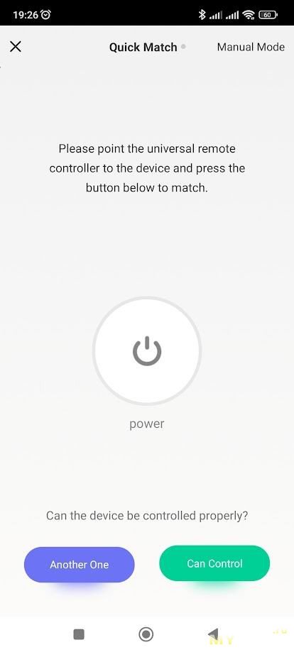 Выбираем первый вариант, он существенно быстрее. Ищем марку своего телевизора и начинаем обучение с кнопки включения. Приложение просит подтвердить, что она работает.