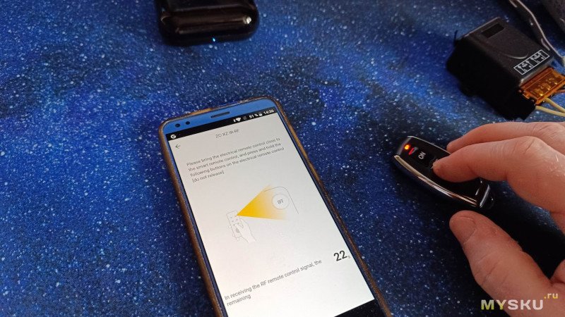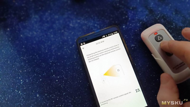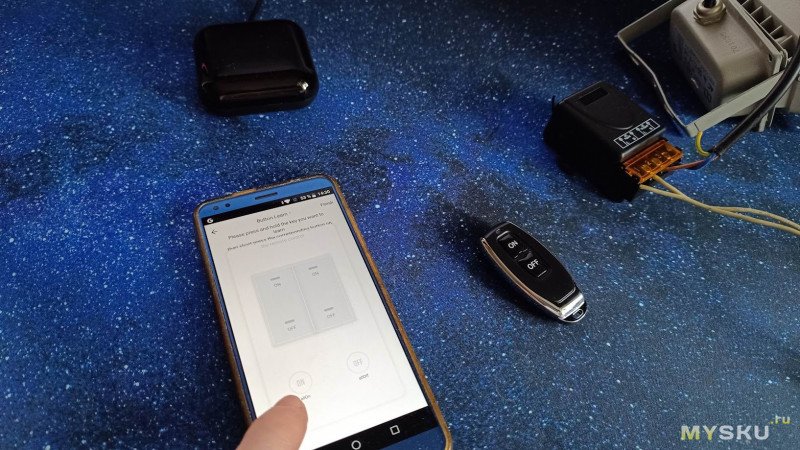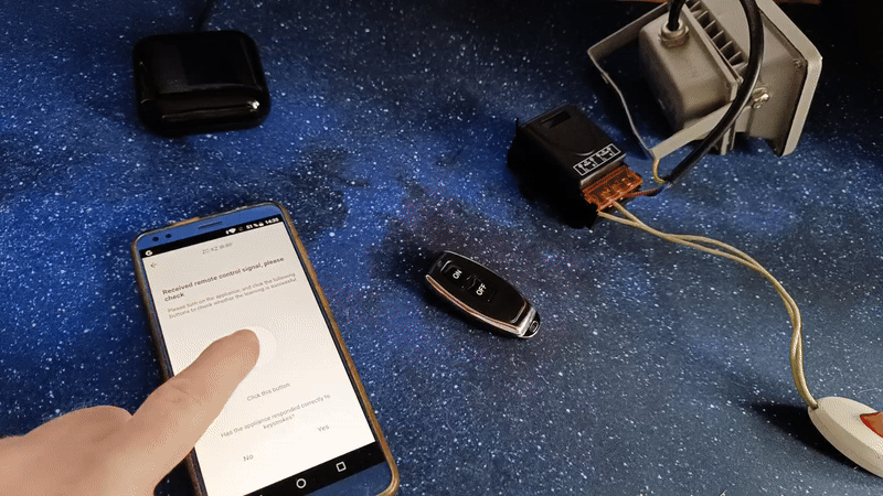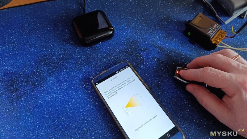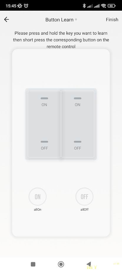 Теперь нужно обучить умный пульт MOES командам с кнопок штатного пульта реле. Для этого нажимаем нужную кнопку в приложении и держим её.