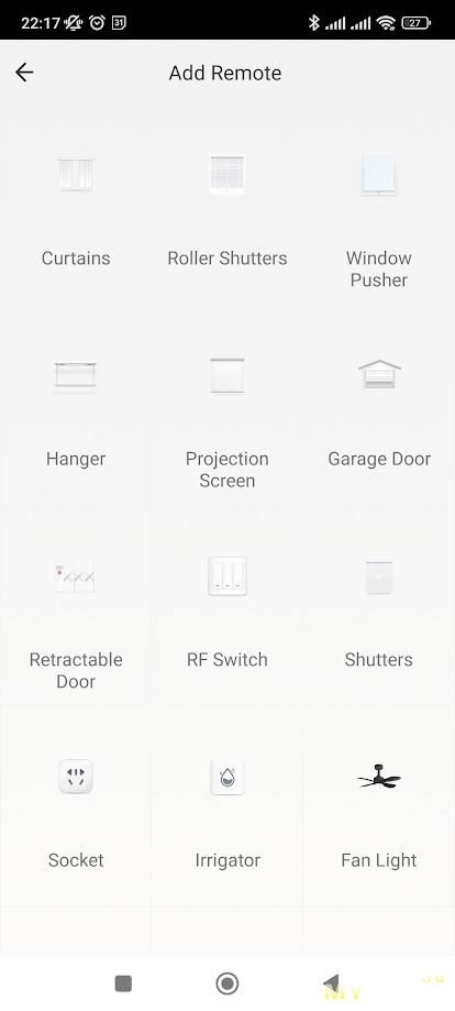 Пульт, который называется TYIRF-RMS (чип BK7231T), прокидывает: Roller Shutter, Windows Pusher, Projector Screen, Retractable Door, Tree-way Switch (пишу по английски, так как прошивки чаще не руссифицированные).