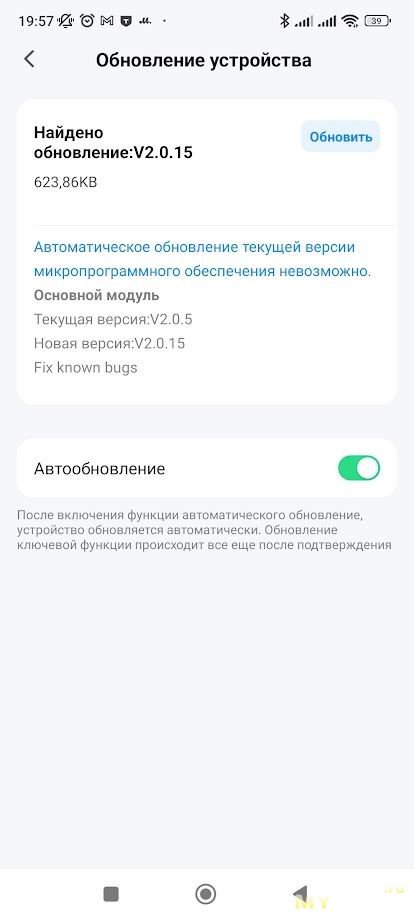 После подключения к домашней сети устройство прописывается в приложении сразу же предлагает скачать обновление ПО. Соглашаемся и ждём окончание загрузки.