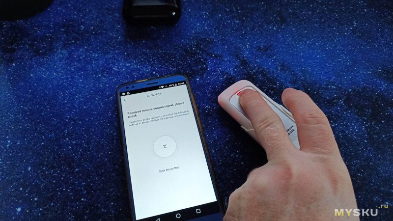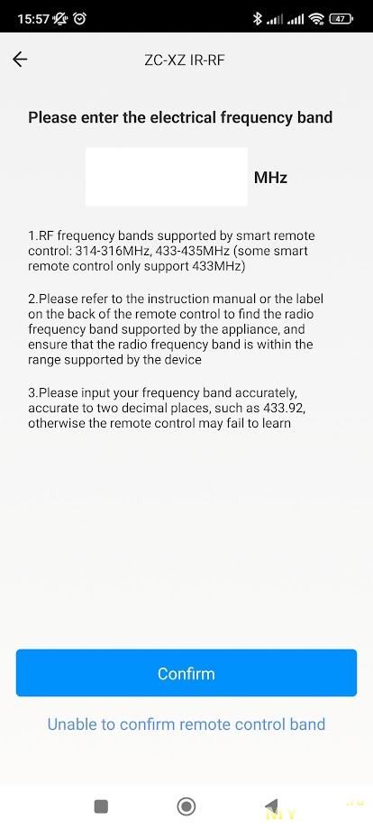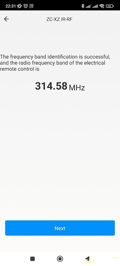 Приложение спрашивает: на какой радиочастоте работает ваш пульт? Если не знаем, то жмём кнопку «Неизвестно». В этом случае умный пульт будет перебирать все доступные диапазоны: 314 — 316 МГц и 433 — 435 Мгц, что будет существенно дольше.