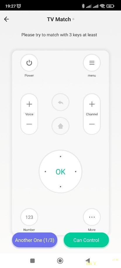 После успешного обучения этой кнопки, продолжаем обучение остальных по очереди. В итоге получаем вот такой виртуальный пульт управления телевизором.