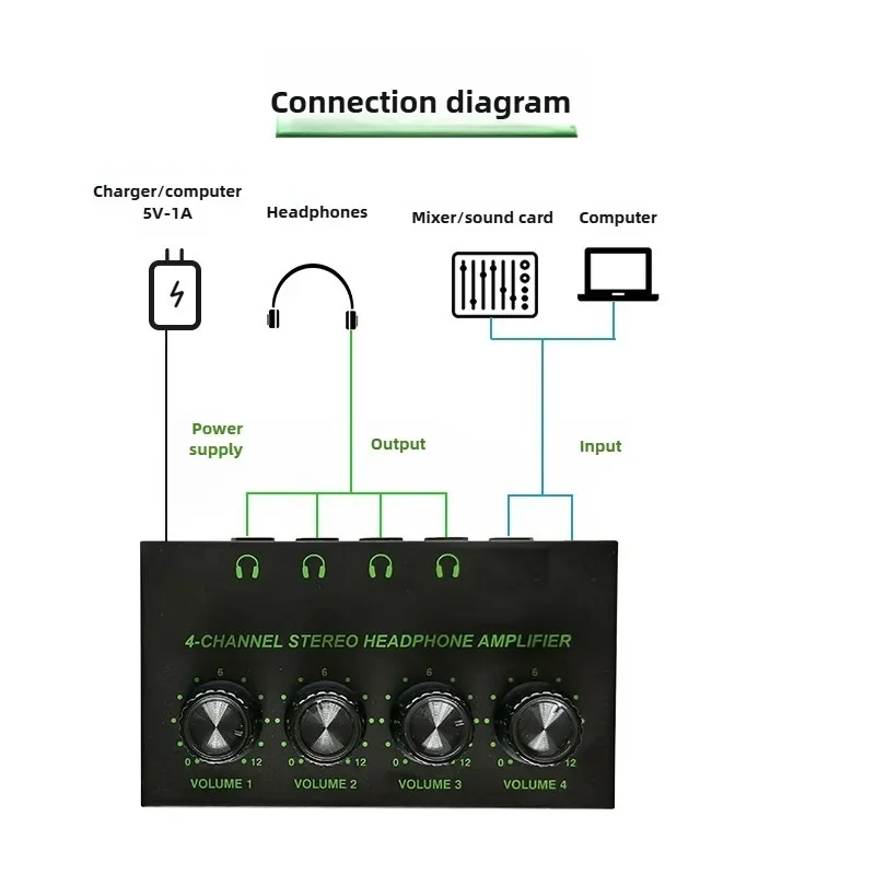 После подключения загорается второй зеленый светодиод. Все. Теперь можно использовать наушники по одиночке, чередуя или слушать пару одновременно.