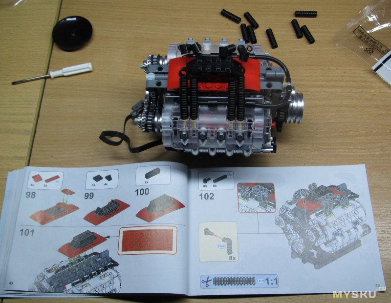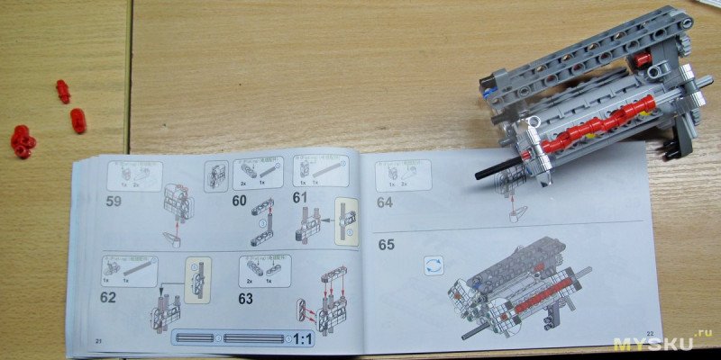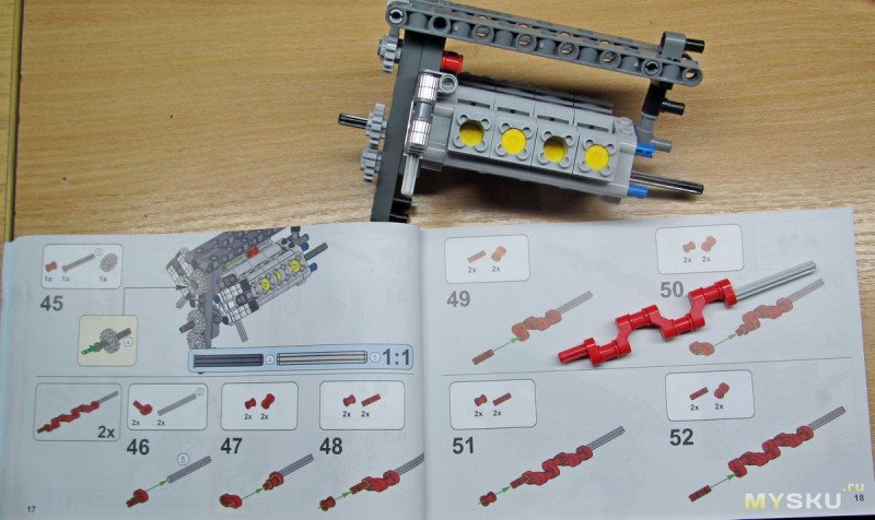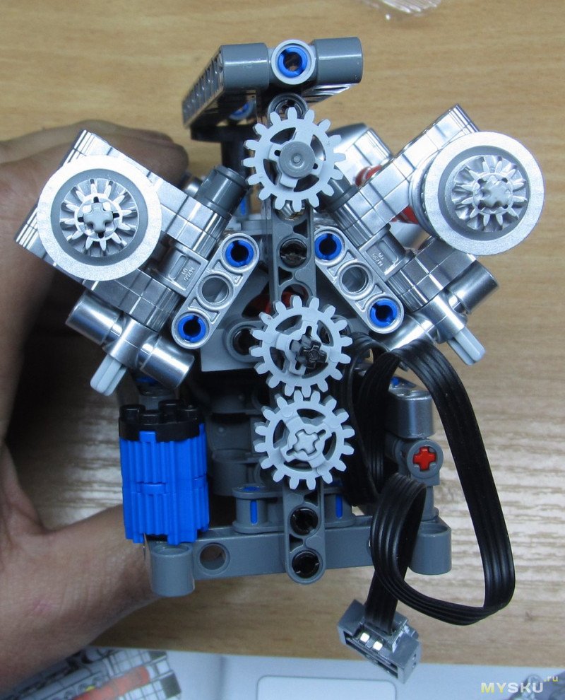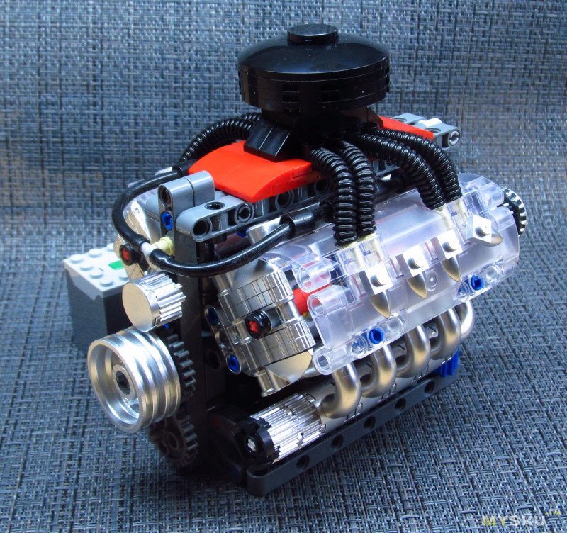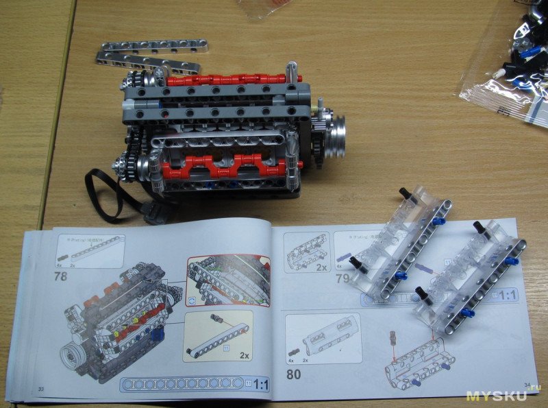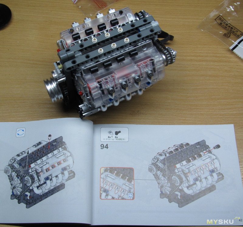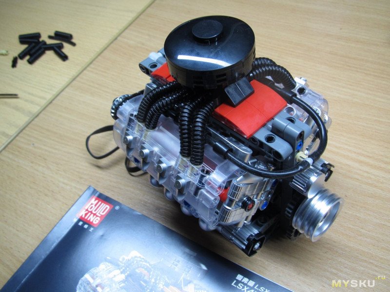 Ну и резюмируем. Шикарная игрушка для маленьких и не очень мальчиков. Мальчик Сирожа 50 годиков собирал сей конструктор порядка 3 часов, и даже почти не накосячил нигде. Распредвалы собрал изначально неправильно — недоставил по детальке, еще в одном или двух местах перепутал крашеную и некрашеную детальку — но это мой косяк по неопытности, ибо в мануале есть не только указание на то что деталь окрашена, но и размеры в виде картинки 1:1. Такие конструкторы это конечно скорее из разряда «сам себе не купишь — жаба задушит», но получить такое в подарок лично мне было бы чертовски приятно. Заявлено по возрасту 14+ и я б сказал что да, примерно так и должно быть, более молодые могут ниасилить. Собирать приятно и интересно, результат впечатляет и выглядит монументально. Разве что клапанные крышки недостаточно прозрачные — не видать что распредвалы крутятся и поршня ходят. Так что если у вас есть например знакомые мотористы с избытком свободного времени и подрастающим сыном, или просто сын/племянник увлекающийся конструкторами и техникой и желание купить не самый дешевый подарок — это отличный вариант.