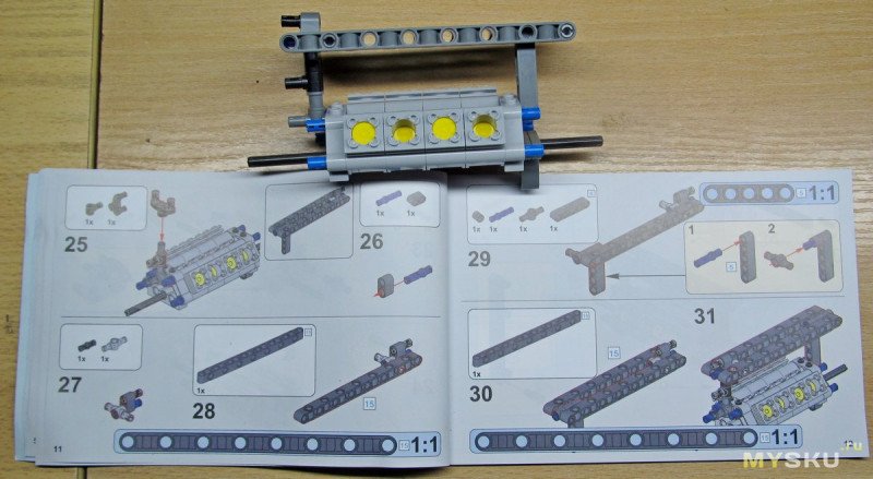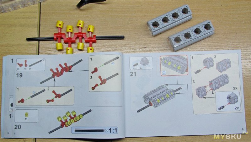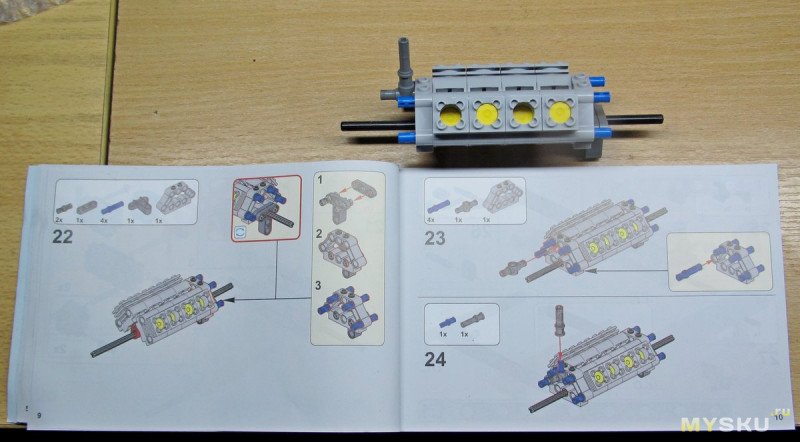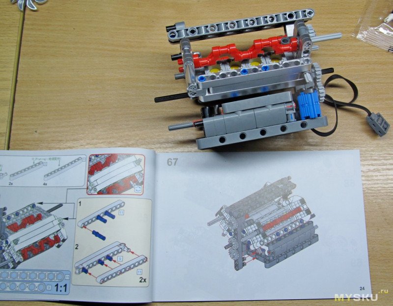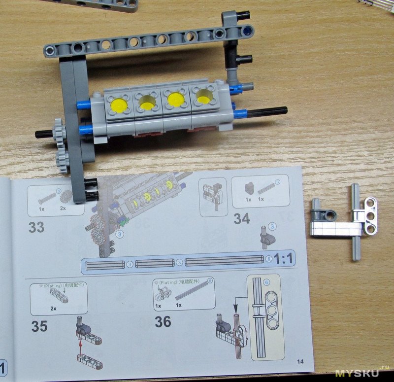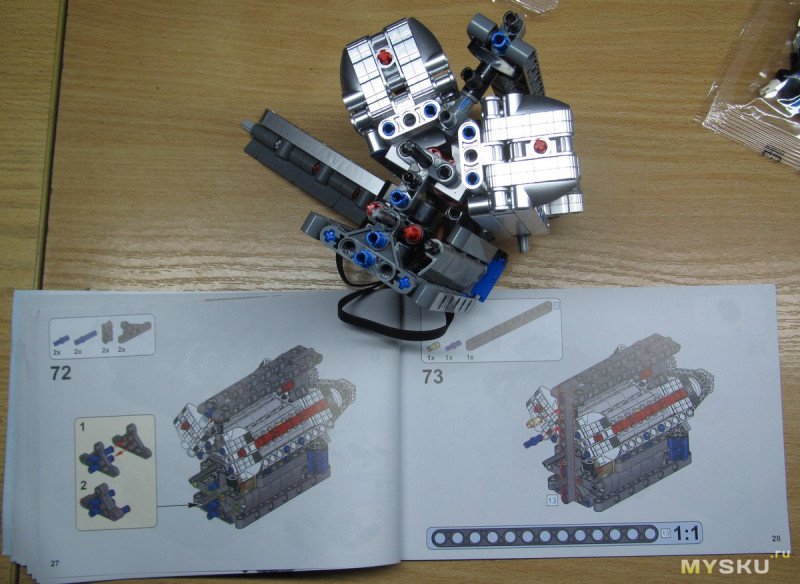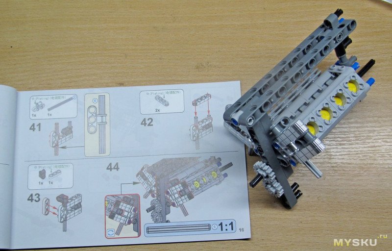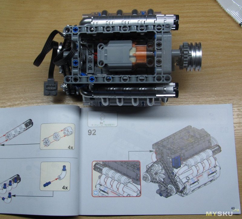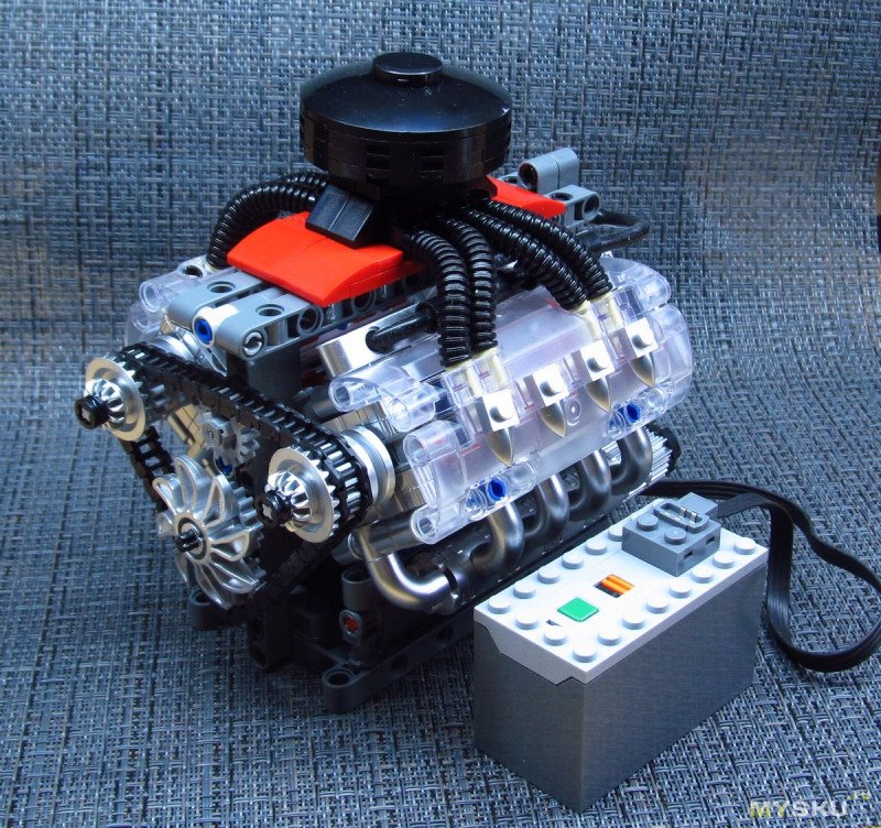 Ну и резюмируем. Шикарная игрушка для маленьких и не очень мальчиков. Мальчик Сирожа 50 годиков собирал сей конструктор порядка 3 часов, и даже почти не накосячил нигде. Распредвалы собрал изначально неправильно — недоставил по детальке, еще в одном или двух местах перепутал крашеную и некрашеную детальку — но это мой косяк по неопытности, ибо в мануале есть не только указание на то что деталь окрашена, но и размеры в виде картинки 1:1. Такие конструкторы это конечно скорее из разряда «сам себе не купишь — жаба задушит», но получить такое в подарок лично мне было бы чертовски приятно. Заявлено по возрасту 14+ и я б сказал что да, примерно так и должно быть, более молодые могут ниасилить. Собирать приятно и интересно, результат впечатляет и выглядит монументально. Разве что клапанные крышки недостаточно прозрачные — не видать что распредвалы крутятся и поршня ходят. Так что если у вас есть например знакомые мотористы с избытком свободного времени и подрастающим сыном, или просто сын/племянник увлекающийся конструкторами и техникой и желание купить не самый дешевый подарок — это отличный вариант.
