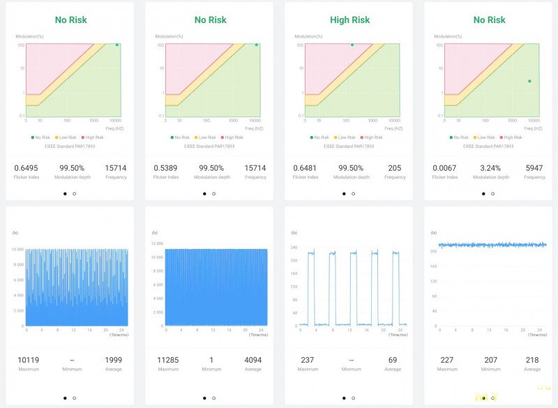 ШИМ адекватный и только при минимальной яркости дополнительного режима частота снижается до 200Гц, что может приводить к усталости глаз при долгом воздействии.