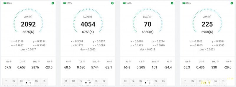 На скриншотах ниже замер яркости в основном режиме(слева) и дополнительном(справа)