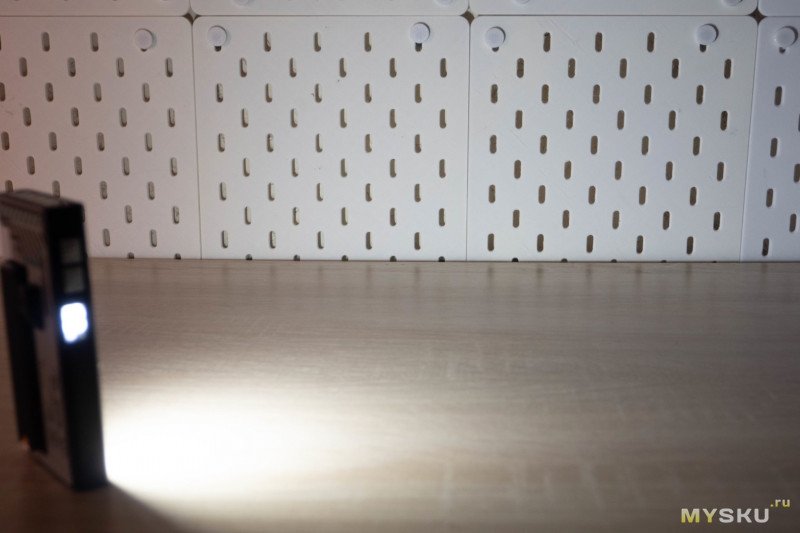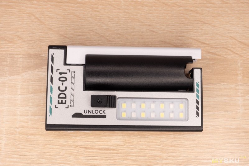 Как писал во вступлении, меня по большей части привлек необычный форм-фактор, а вот с практической точки зрения дизайн не особо удачный. Клипсы нет, темляк цеплять смысла так же нет, но вот магнитная площадка на боковой грани позволяет использовать его в автомобиле, зафиксировав на ближайшей металлической пластине. Да и быстросъемный аккумулятор тоже для меня является жирным плюсом, т.к. не люблю надолго оставлять в салоне гаджеты на литии без присмотра. Так что после тестирования он поселился в подлокотнике, при необходимости в два движения вставляется элемент питания и фонарь готов к работе.