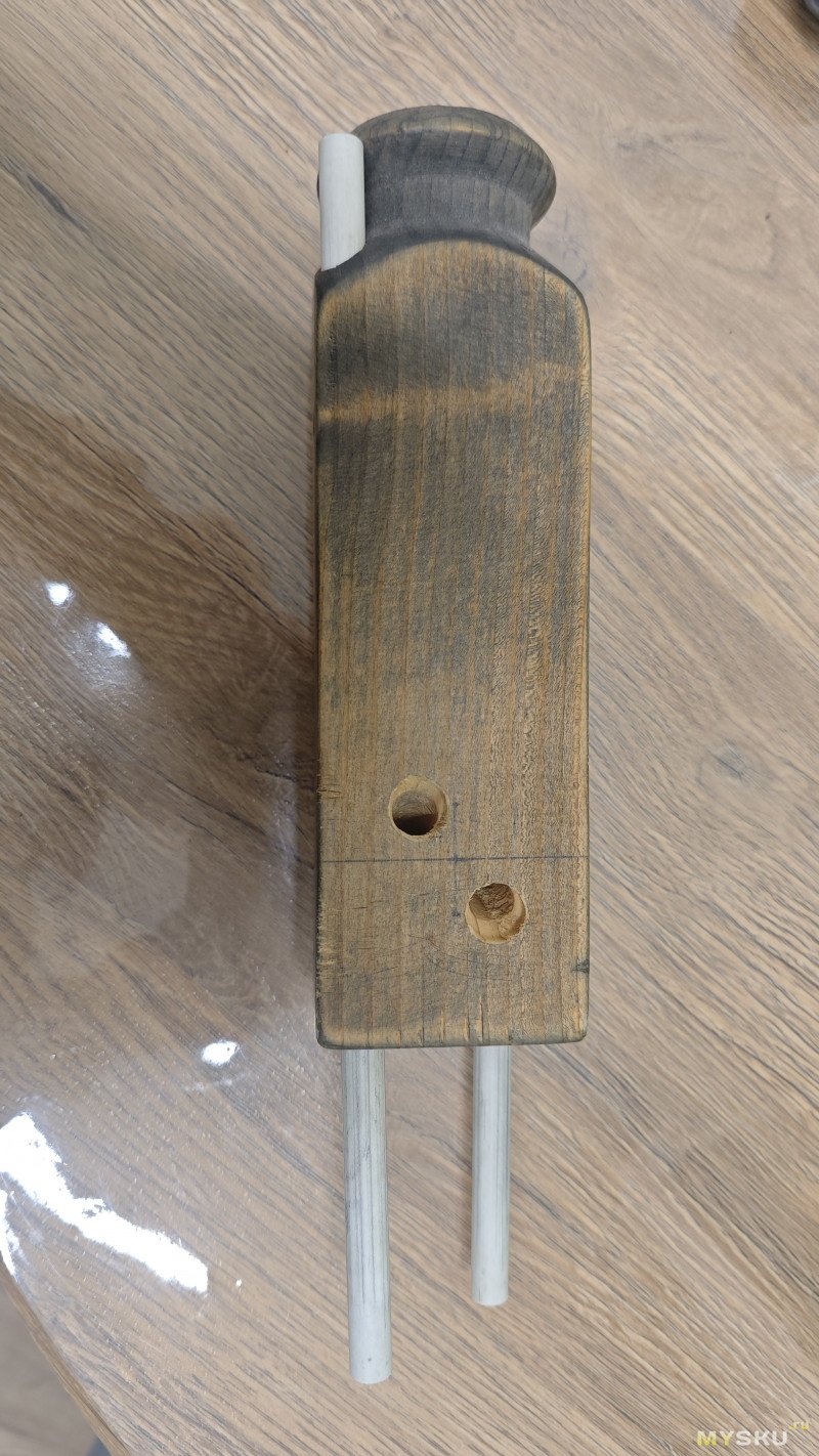 3. Попался где-то ушатанный нож (как правило у тещи). На станке выправил РК. Когда затупился — по трубкам.