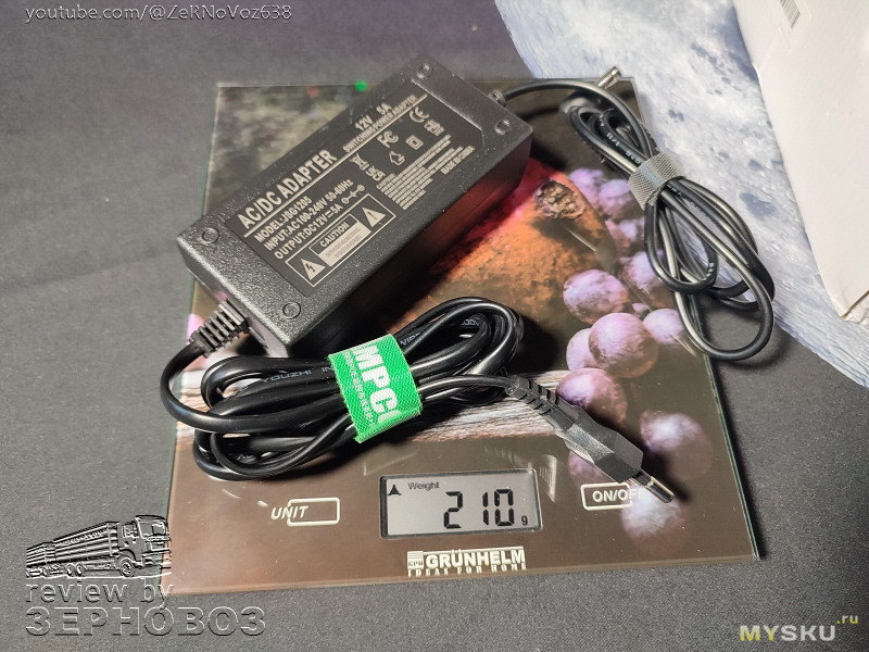 и, наконец, блок питания — 210г (липучка — моя, в комплекте была обычная скрутка)