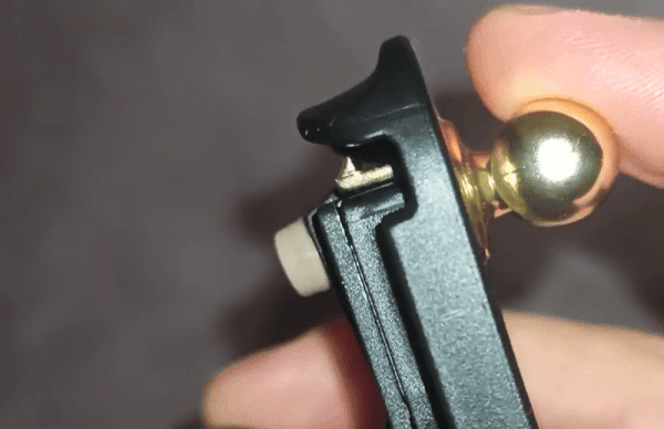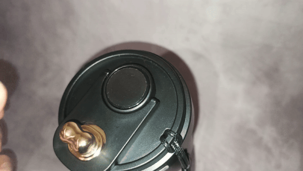 Визуально выделяется золоченый рычаг для разблокировки откидной части — напоминает застежку женской сумочки (или бубенчики кота — зависит от того, что вам ближе).