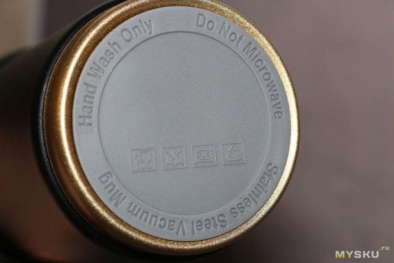 Днище прорезинено, на нем отлиты сервисные отметки относительно использования и ухода за кружкой.