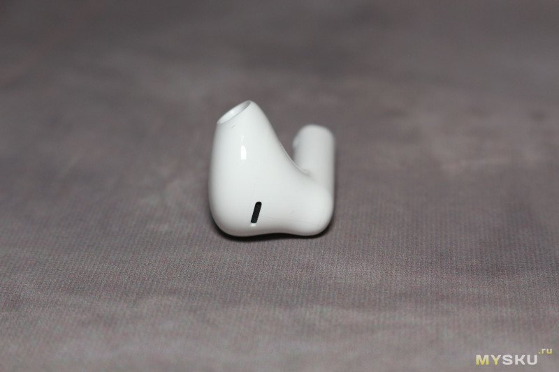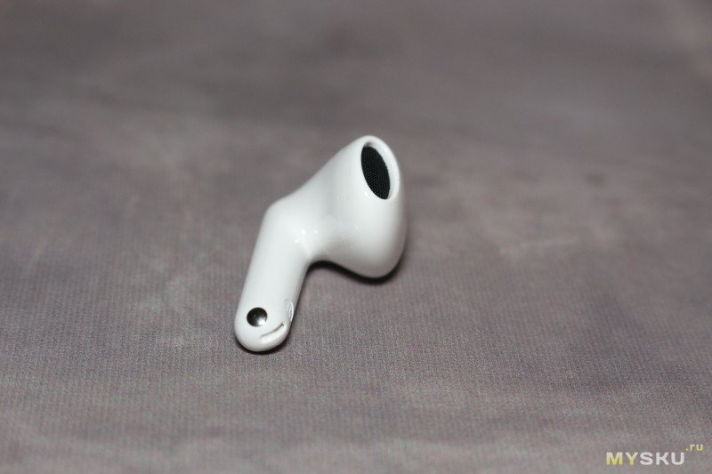 Выход звуковода закрыт сеткой, на верхней грани находится также закрытое сеткой крупное компенсационное отверстие. Отверстие микрофона глубоко утоплено в прорезь между контактами для зарядки внизу ножки.