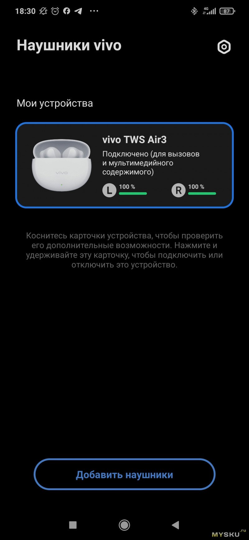 Но, как оказалось, приложение, установленное, из Google Play не видит эту модель гарнитуры. Недолгий поиск привел к ссылке на apk файл на сайте Vivo, и с этой версией приложения TWS Air3 нормально подружилась.