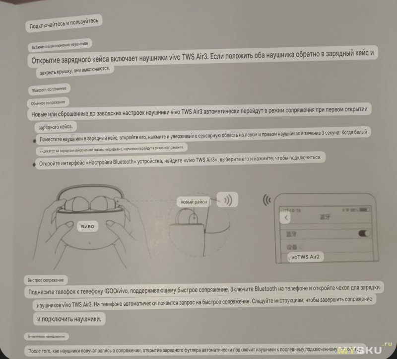 Для соединения с телефоном надо открыть кейс и не вынимая гарнитуру зажать сенсорные зоны обоих наушников на 3 сек — устройство перейдет в режим спаривания.Для дополнительных настроек можно установить фирменное приложение VEarphones.
